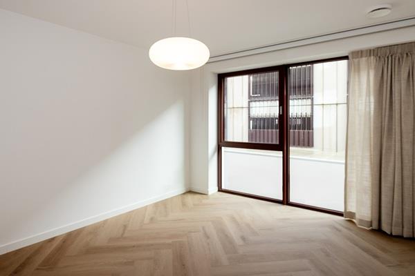 De woonkamer is licht dankzij de grote ramen. Vanuit hier stap je direct het ruime balkon op om even te genieten van de buitenlucht. De open keuken is strak afgewerkt en volledig uitgerust met inbouwapparatuur: vaatwasser, combi-oven, inductiekookplaat, koelkast en voldoende kastruimte.