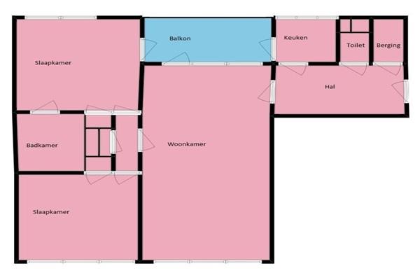 Indeling: gezamenlijke entree met bellentableau begane grond, trappenhuis en lift naar etages, entree appartement. Vanuit de hal zijn de keuken, het toilet en de woonkamer te bereiken. De woonkamer is zeer licht door raampartijen aan beide kanten. Vanuit de woonkamer zijn het balkon en de slaapkamers te bereiken. De badkamer is te bereiken vanuit de voorste slaapkamer en is voorzien van een douche, toilet en wastafel.