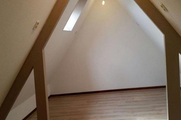 Lichte woonkamer (25 m2)met laminaatvloer inbouwkast en dakkapel.