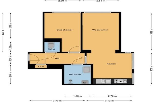 Je betreedt dit prachtige appartement via de entree die toegang biedt tot een separaat toilet en de badkamer is voorzien van douche, wastafel, vloerverwarming en wasmachineaansluiting. De entree biedt de doorgang naar de keuken en de woonkamer. Vanuit de keuken welke beschikt over diverse inbouwapparatuur waaronder een inductiekookplaat, combimagnetron, afzuigkap en koelkast met vriesvak, bereik je de woonkamer. De woonkamer is een mooie ruimte met veel lichtinval door de grote raampartijen. Dit appartement beschikt over een slaapkamer.