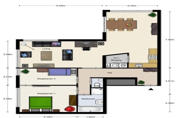 Het appartement beschikt over twee slaapkamers