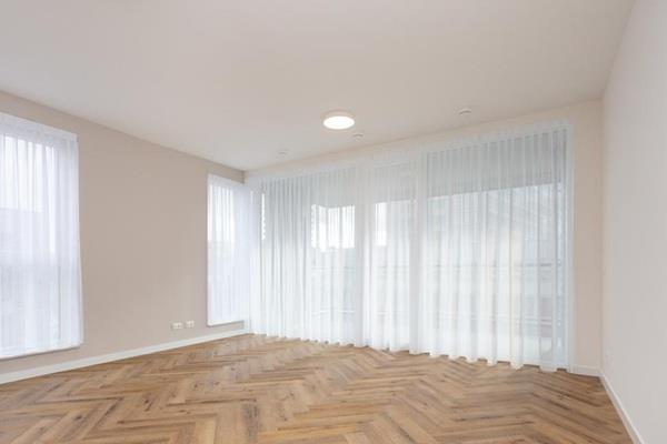 Gemeenschappelijk entree met brievenbussen, trap of lift naar verdieping. Entree appartement, hal met kast met wasmachine aansluiting. Separaat toilet met fonteintje. Zeer lichte woonkamer met luxe open keuken (oa oven, koel-/vriescombinatie, inductie kookplaat, afzuigkap en vaatwasser) en toegang tot het zeer riante balkon. Twee naast elkaar gelegen ruime slaapkamers, eveneens met toegang tot het balkon. Badkamer met dubbele wastafel, inloopdouche en 2e toilet. Eigen berging in de onderbouw.