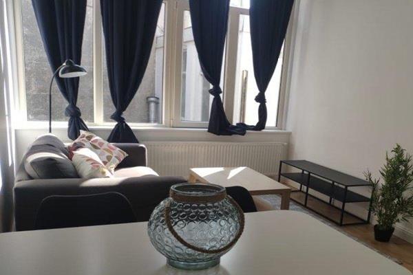 Hoofd entree op de begane grond . Met trap omhoog naar eerste verdieping waar de deur bevindt tot de woning. Binnenkomst in een ruime woonkamer met open keuken. De keuken is voorzien van verschillende inbouwapparatuur zoals gasfornuis, afzuigkap, koelkast met vriezer, oven en vaatwasmachine.