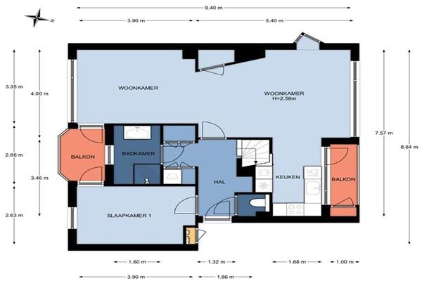 De slaapkamer is aan de rustige achterzijde gelegen en biedt eveneens toegang tot één van de balkons. De riante badkamer met raam is voorzien van een inloopdouche, wastafelmeubel en designradiator. De combinatie van stuc- en tegelwerk geven de badkamer een eigentijds uiterlijk.