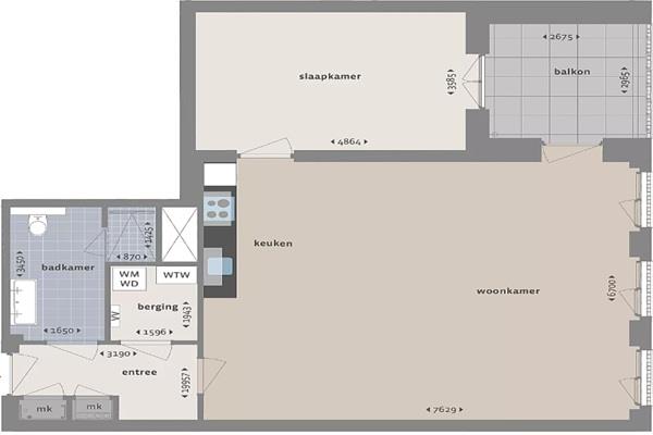 2-kamer appartement met een oppervlakte van 87 m2. Het appartement beschikt over een ruime woonkamer. Vanuit de hal bereik je de woonkamer. De badkamer is voorzien van een douche, designradiator en dubbele wastafel. Het toilet tref je in een separate ruimte. De open keuken is uitgerust met inbouwapparatuur en beschikt over een vaatwasser, inductiekookplaat, afzuigkap, koelkast met vriesvak, combi-magnetron/oven en composiet werkblad. Praktisch is de inpandige berging welke is voorzien van een aansluiting voor jouw wasmachine en/of droger!