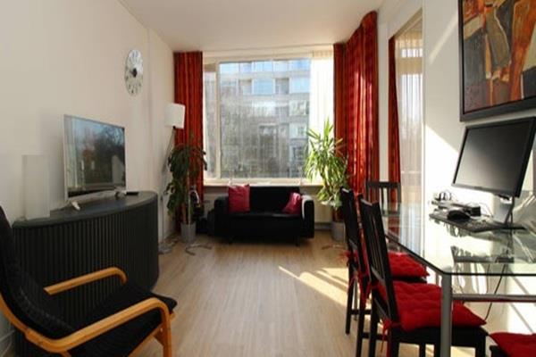 Indeling: Entree via gesloten portiek, entree appartement, ruime hal, moderne keuken met zwart graniet aanrecht, inbouw combi oven/magnetron, 4 pit gasstel, afzuigkap, vaatwasser, Amerikaans modern koelvrieskast, wasmachine en wasdroger. Moderne wc, woon- eetkamer 5,5 x 5, laminaat vloer en deur naar balkon (W), slaapkamer 3,85 x 2,85 annex moderne badkamer met inloopdouche en wastafel. Appartement is volledig gemeubileerd en voorzien van beddengoed.