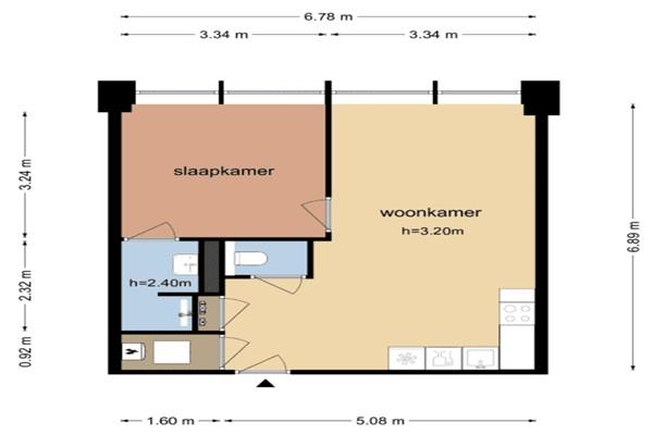 Dit twee kamer appartement is gelegen op de begane grond. Bij binnenkomst in de hal kan je vandaar uit naar de woonkamer met open keuken voorzien van inbouwapparatuur (koelkast, kookplaat, afzuigkap en combimagnetron), heb je toegang naar je slaapkamer, de badkamer is voorzien van inloopdouche, wastafel en toegang tot het separaat toilet.