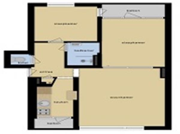 Het appartement beschikt over twee slaapkamers van respectievelijk 6m² en 3m², ideaal voor een slaapkamer, werkkamer of hobbyruimte. De kamers zijn knus en goed in te richten naar eigen wens.