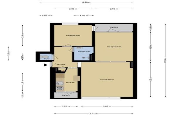 Het appartement beschikt over twee slaapkamers van respectievelijk 6m² en 3m², ideaal voor een slaapkamer, werkkamer of hobbyruimte. De kamers zijn knus en goed in te richten naar eigen wens.