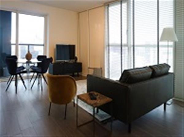 17e verdieping: entree met hal, apart toilet met wastafel. Lichte woonkamer met toegang tot het balkon, Sonos-systeem, open en moderne keuken (volledig uitgerust) en aparte berging met wasmachine en droger. Master bedroom met Auping-bed, kledingkast en flatscreen. Tweede slaapkamer met kledingkast. Badkamer met wastafel en inloopdouche.