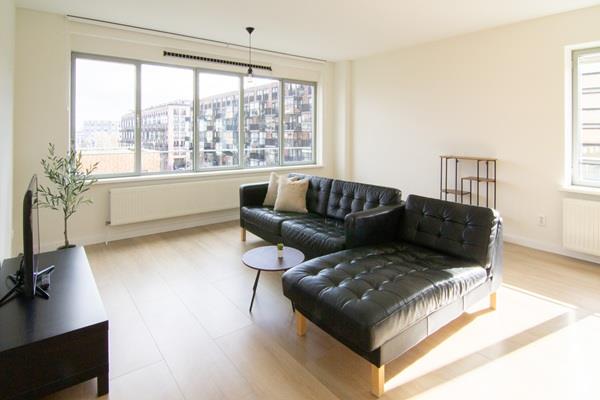 De woonkamer is ruim en licht te noemen door de vele raampartijen. De woonkamer heeft een open keuken en deze is van alle gemakken voorzien, te weten: koelkast, vriezer, vaatwasser, combi-oven, inductiekookplaat met ingebouwde afzuigkap. Daarnaast is er nog veel bergruimte aanwezig.