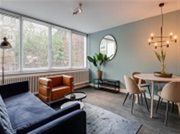 Lichte en ruime woonkamer gelegen aan de tuinzijde. De woning is modern ingericht met luxueus meubelen. Voorzien van een moderne keuken met diverse inbouwapparatuur met alle wenselijke apparatuur. De woonkamer is voorzien van ramen over de gehele breedte.