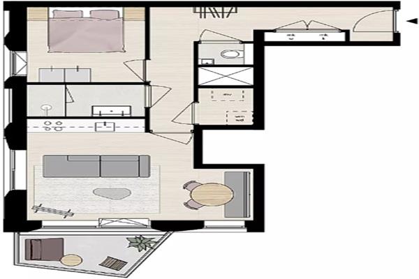De woonkamer is ruim en licht door de grote ramen. De open keuken sluit hier mooi op aan en vormt het hart van het appartement. Of je nu snel iets klaarmaakt na het werk of uitgebreid kookt voor vrienden, het kan hier allemaal. Vanuit de woonkamer loop je door naar de loggia: een beschutte plek waar in de ochtend de zon naar binnen schijnt en waar je ’s avonds rustig kunt zitten met uitzicht over de stad.