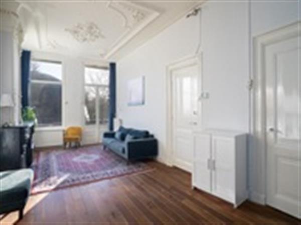 Via de entree bereikt u de eerste verdieping waar de ruime open woonkamer zich bevindt. Deze woonkamer strekt zich uit van voor naar achter en is voorzien van grote ramen aan de voorzijde en een origineel, sierlijk plafond. De open keuken is uitgerust met alle benodigde inbouwapparatuur. Het balkon op het zuidoosten biedt uitzicht op het groen van Plantage Kerklaan en Artis.