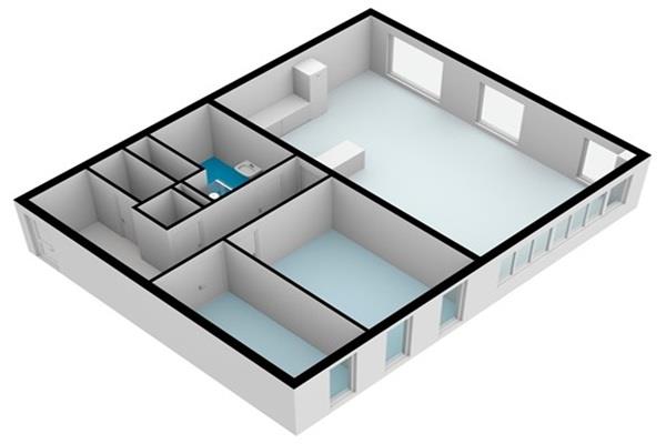 Door de voordeur komt u in de hal van het appartement. Deze hal biedt toegang tot de woonkamer met open keuken, de slaapkamers, de badkamer, een berging en het separate toilet.