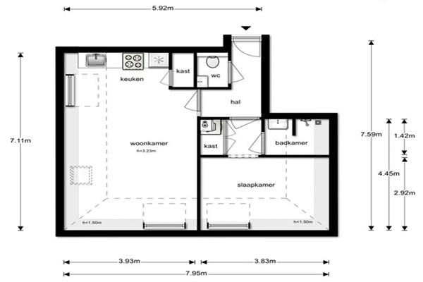 Entree, verzorgd gemeenschappelijk trappenhuis met de woningtoegangsdeur op de derde verdieping. Hal met toegang tot de woonkamer en het separate toilet met fontein. Ruime woonkamer met open keuken welke is voorzien van diverse inbouwapparatuur zoals een koelkast met vriesvak, 4-pits gaskookplaat, afzuigkap, combi oven/magnetron en vaatwasser. De slaapkamer is te bereiken vanuit de woonkamer en beschikt over een en-suite badkamer met inloopdouche en een wastafel met meubel. De slaapkamer beschikt over een ruime inbouwkast met de CV ketel, de wasmachine en droger.