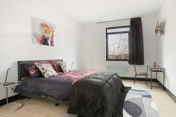 De badkamer is afgewerkt met smaakvolle grootformaat tegels, regendouche, spiegel met ledverlichting, wastafel en meubel. Naast de badkamer bevindt zich het separate toilet, volledig in dezelfde stijl. Een derde ruimte naast de badkamer is de zeer ruime wasruimte met een wasmachine/droogcombinatie en extra bergruimte. De royale slaapkamer heeft een groot tweepersoonsbed, bureau en een garderobekast met spiegel.