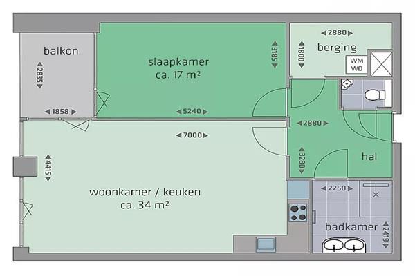 2-kamerappartement met een oppervlakte van 71 m². Het appartement beschikt over een lichte woonkamer met toegang tot het balkon. Het appartement heeft 1 slaapkamers. De keuken is uitgerust met diverse inbouwapparatuur. De badkamer is luxueus uitgevoerd met een douche en dubbele wastafel. Tevens tref je een aparte berging in het appartement welke is voorzien van een aansluiting voor jouw wasmachine en/of droger.