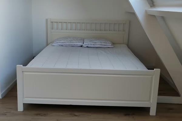 De slaapkamer bevindt zich op de bovenverdieping, is circa 25 m² groot en heeft twee grote dakramen.