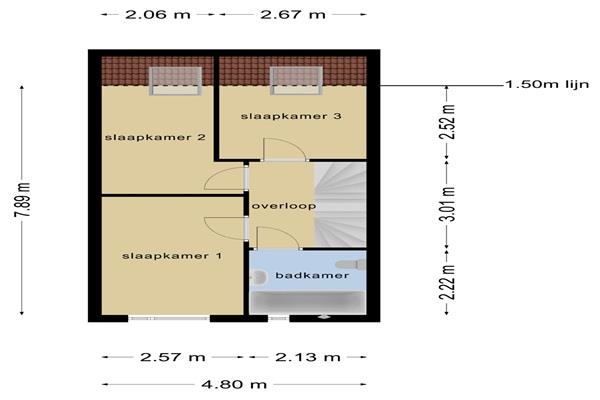 Eerste verdieping: op de eerste etage zijn drie slaapkamers en de badkamer.
