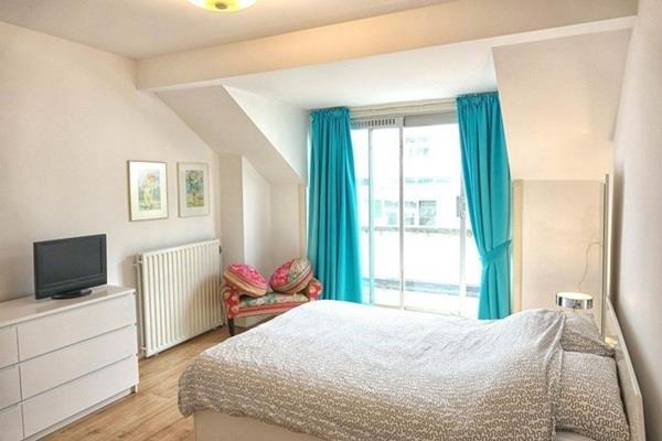Trap naar de 1e verdieping, overloop met diepe kast waarin de nieuwe CV-ketel en de wasmachine en wasdroger. Twee ruime slaapkamers: aan de achterzijde met vaste kastenwand en schuifpui naar het balkon over de volle breedte. De tweede ruime slaapkamer bevindt zich aan de voorzijde en heeft een extra doucheruimte en kast met wastafel; de derde slaap-/studeerkamer bevindt zich eveneens aan de voorzijde.
