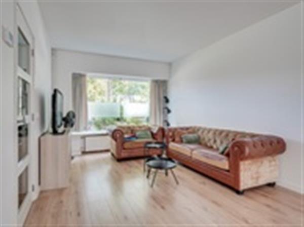 U komt binnen in de ruime woonkamer voorzien van strakke wanden welke over de volle breedte is uitgebouwd aan de achterzijde. Door de grote raampartijen zowel aan de voorzijde als de achterzijde van de woning geniet u van veel lichtinval. Het zitgedeelte aan de voorkant van de woning biedt voldoende ruimte voor het plaatsen van een robuuste hoekbank.
