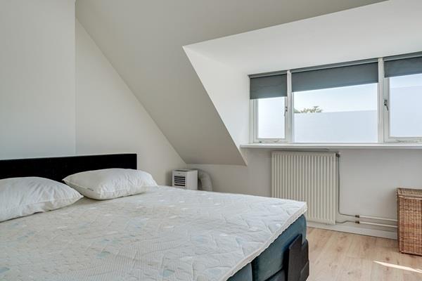 De derde ruime slaapkamer is keurig afgewerkt met een laminaatvloer en strakke wanden. Door de dakkapel geniet de kamer van voldoende lichtinval.
