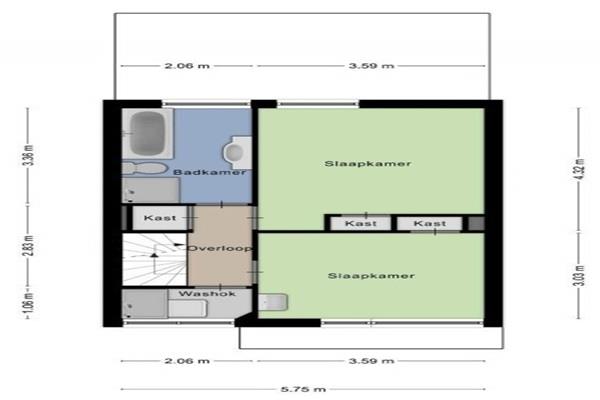 De eerste verdieping is voorzien van 2 grote slaapkamers voorzien van een laminaatvloer. De slaapkamers hebben veel natuurlijk lichtinval.