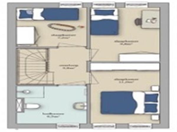 Vanaf de overloop heb je toegang tot drie slaapkamers en de nette badkamer, die is uitgerust met een inloopdouche, wastafel en toilet. Ook deze verdieping is keurig afgewerkt met een PVC-vloer en verzorgde wandafwerking, wat zorgt voor een moderne en harmonieuze uitstraling.