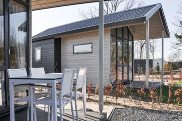 Woonkamer met openslaande deuren naar het terras en een volledig uitgeruste keuken