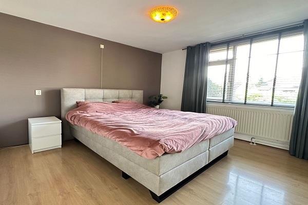 Middels trapopgang toegang tot de overloop van de eerste verdieping. De overloop geeft toegang tot 2 slaapkamers en de badkamer. Slaapkamer 1 van ca. 20 m2 en is gelegen aan de voorzijde van de woning. De kamer beschikt over 2-persoonsbed en grote kledingkast. Slaapkamer 2 van ca. 14 m2 gelegen aan de achterzijde en in gebruik als kantoor. De slaapkamers zijn voorzien van vloerbedekking. Luxe volledig betegelde badkamer voorzien van inloopdouche, tweede toilet en wastafel met meubel.