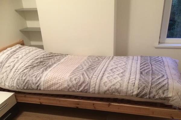 De kamer bevat een eenpersoonsbed, bureau met stoel, fauteuil, boekenkast, kast met kluisje binnenin, verduisteringsgordijnen, spiegel, lampen, nieuw beddengoed en handdoeken, gratis wifi.