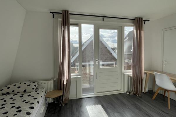 De kamer bevindt zich op de eerste etage aan de voorzijde van het pand en heeft een keukenblok en een eigen balkon.