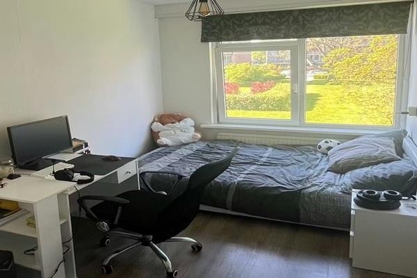 Deze kamer is gemeubileerd en geschikt voor 1 persoon. Een andere, grotere slaapkamer heeft een balkon, die eigenlijk voor gezamenlijk gebruik bestemd is; het balkon is ook via de badkamer bereikbaar.