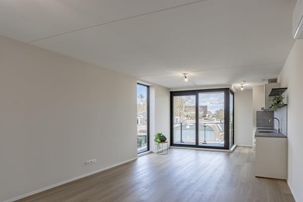 Deze studio heeft een lichte en praktische indeling, waarbij de woonruimte naadloos overgaat in de open keuken. Dankzij de grote raampartijen geniet de woning van veel natuurlijk licht en een prettige woonbeleving.