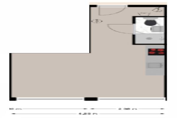 De studio is efficiënt ingedeeld en biedt een comfortabele leefruimte. De moderne keuken is voorzien van een vaatwasser, kookplaat, afzuigkap en aansluitingen voor een wasmachine, zodat alles wat je nodig hebt binnen handbereik is. De compacte badkamer is volledig uitgerust met douche, toilet en wastafel.