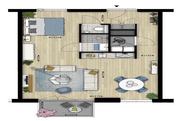 De heeft geen apart slaapgedeelte maar dit kan naar eigen smaak gecreëerd en ingericht worden De badkamer is strak vormgegeven en voorzien van een inloopdouche, moderne wastafel en designradiator. Een apart toilet zorgt voor extra comfort.