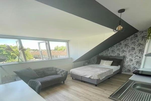 De studio is circa 15 m², bevindt zich op de tweede verdieping aan de achterzijde van het gebouw en beschikt over een eigen keuken. De ruimte is afsluitbaar voor privacy en veiligheid. Gemeenschappelijke voorzieningen zijn een toilet, wasruimte, balkon en badkamer.